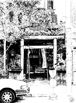 銀座三丁目郵便局近くの小さな宝珠稲荷神社。向かいはマガジンハウス。( 1989月12月)