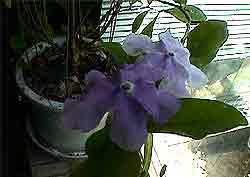 それはともかく、茉莉花はジャスミンの一種で、香りがいい。強い香りを放つというのではないが、花に近寄ると何ともいえない香りがする。花の形も香具という印象。この薄紫が心を引くが、二、三日すると色が消えて白い花になる。